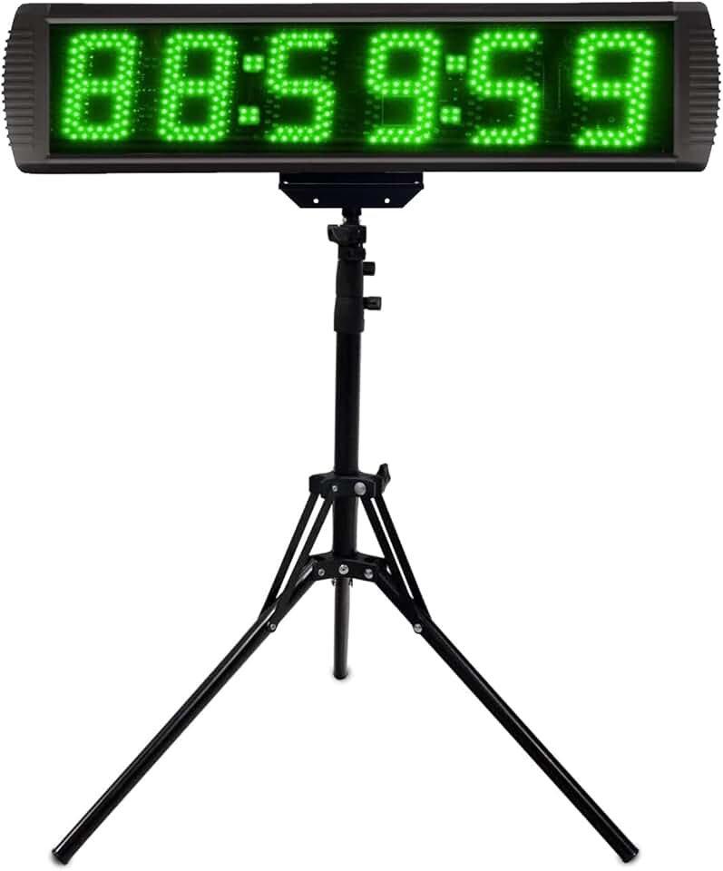 GANXIN 5 Inch LED Race Clock with Tripod for Running Events,Marathon Countdown Clock,Gym Timer Clock,Count Up,Stopwatch,Wireless Remote Control&APP Control,5 Levels Brightness Adjustable (Green)
