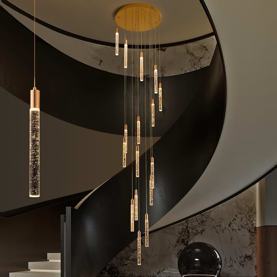 High Ceiling Chandelier - Long Bubble Chandelier with Adjustable Brightness & 3 Light Options, Ideal Modern Led Crystal Chandeliers for Enhancing Your Staircase, Foyer, Entryway - 16 Lights