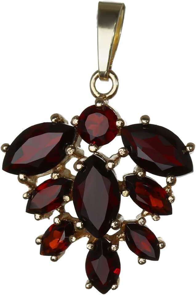 garnet chain pendant goldsmith work 14 carat 585 gold leaves grape 3241
