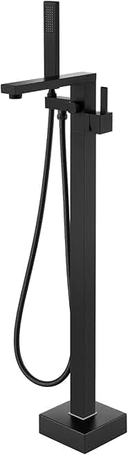 Freestanding Bathtub Faucet Tub Filler Black Floor Mount Bathroom Faucets Brass Single Handle with Hand Shower