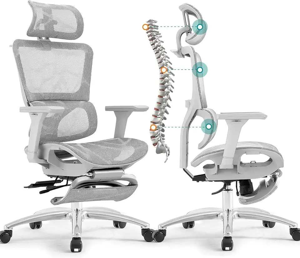 Ferral Ergonomic Office Chair, High Back Mesh Office Chair with Adaptative Lumbar Support, 3D Adjustable Armrest & Seat Depth, Rolling Desk Chair with Tilt Function, Adjustable Headrest (Silver Gray)