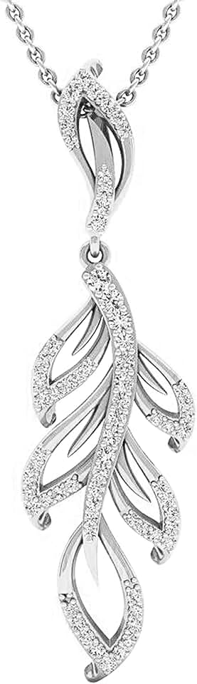 Dazzlingrock Collection 0.50 Carat (ctw) 18K Round Diamond Ladies Leaf Pendant 1/2 CT (Silver Chain Included), White Gold