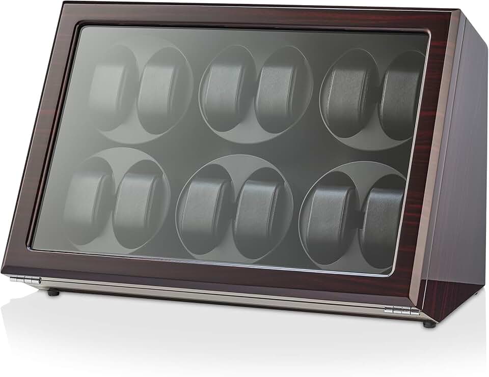12 Watch Winder Box for Automatic Watches with Battery Option (Ebony)