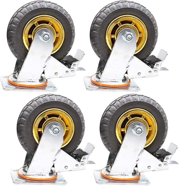 Universal Industrial Caster Wheels Heavy Duty 360° Swivel Transport Trolley Furniture Caster Swivel Plate Silent Replacement Rubber Wheel,Pack of 4(brake125mm)
