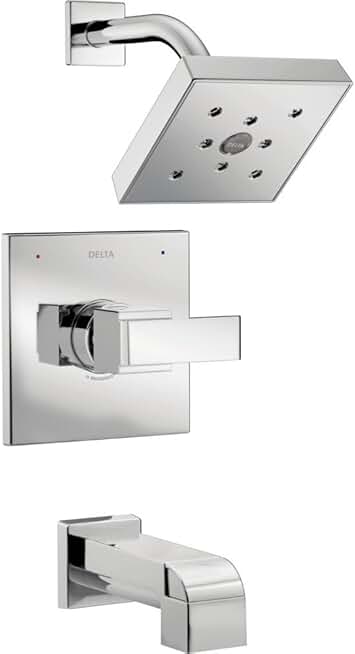 Delta Faucet Ara 14 Series Single-Function Tub and Shower Trim Kit with Single-Spray H2Okinetic Shower Head, Chrome T14467 (Valve Not Included)