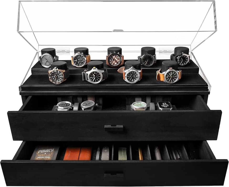 Elevate Your Watch Collection with The Legacy – Premium Watch Display Case for 17 Watches – Easy Access, Huge Drawers & Leather Lining – Wooden Mens Watch Box & Watch Stand – Lifetime Assurance