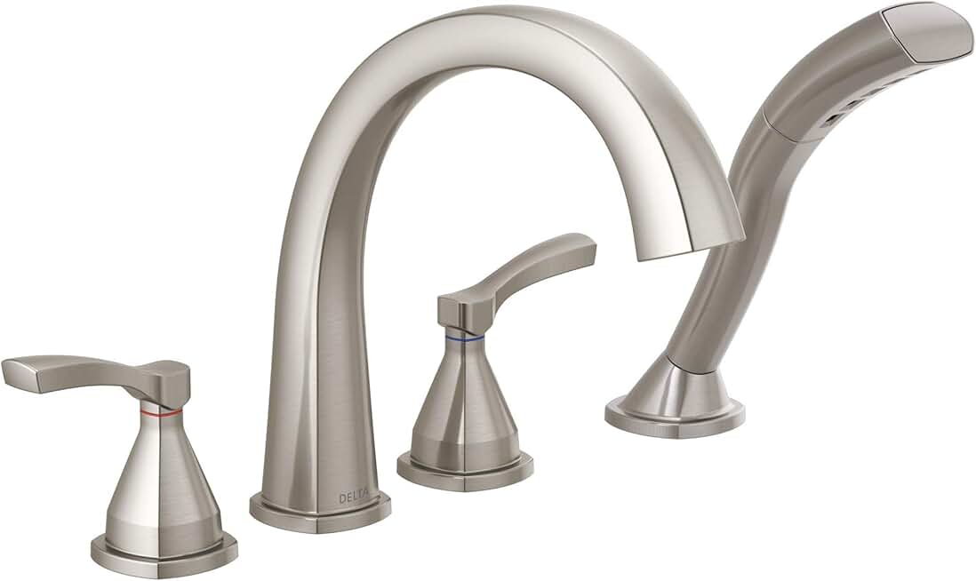 Delta Faucet Stryke Roman Tub Faucet - T4777-SS - Bathtub Handles, Faucet & Diverter - Modern Bathroom Fixtures - Stainless, Lever Handles (Valve Sold Separately)
