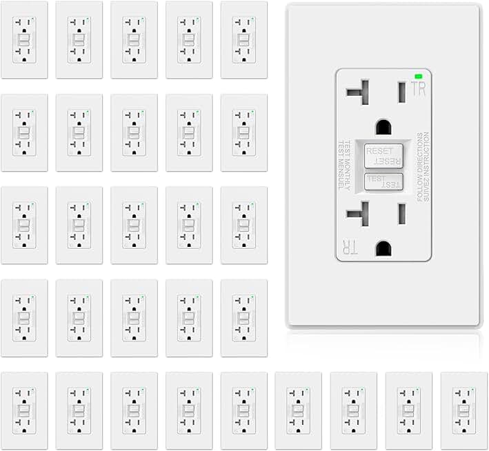 ELEGRP GFCI Outlet 20 Amp, Self-Test GFI Electrical Outlet with Thinner Design, TR Tamper Resistant GFCI Receptacle, Ground Fault Circuit Interrupters with Wall Plate, UL Listed, Matte White, 30 Pack