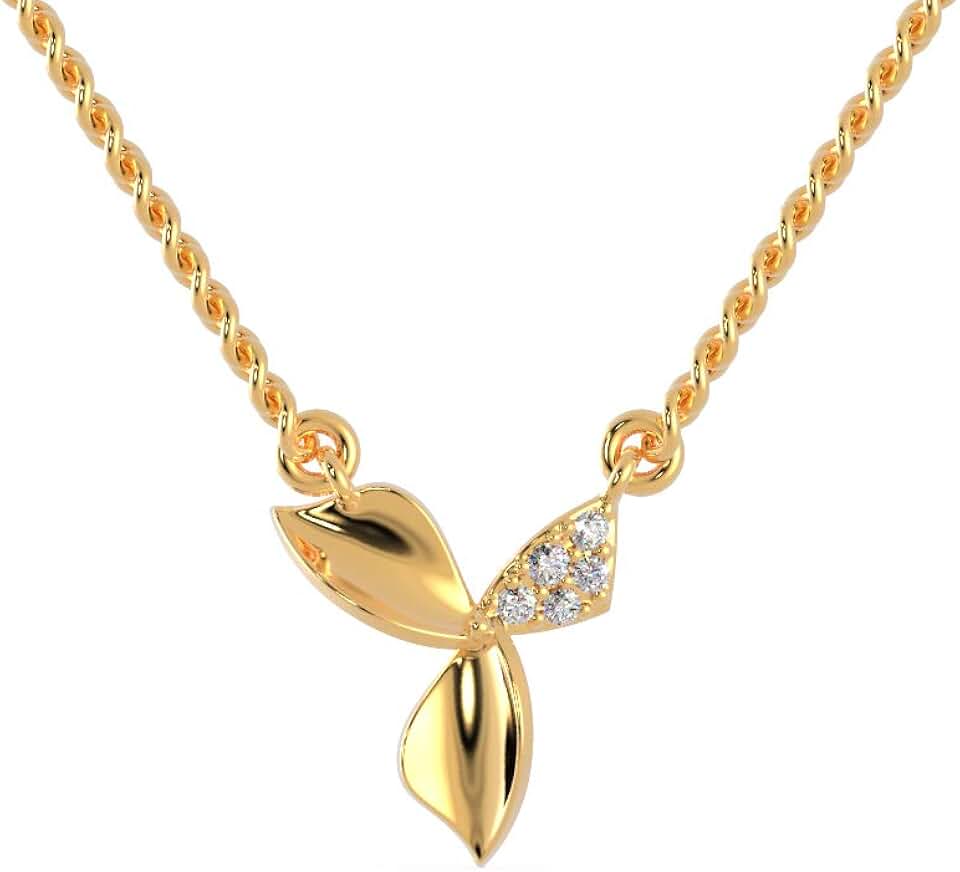 Certified Leaf Style Pendant in 14K White/Yellow/Rose Gold with 0.05 Ct Round Natural Diamond & 18k Gold Chain Necklace for Women | Beautiful Pendant Necklace for Mother, Wife, Daughter (IJ, I1-I2)