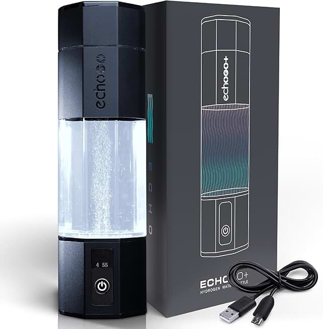 Echo Go+ Hydrogen Water Bottle - Water Ionizer Up to 4.5PPM - SPE & PEM Hydrogen Water Generator - Gary Brecka Recommended - Alternative to Hydrogen Water Pitcher - Black Hydrogenated Water Bottle