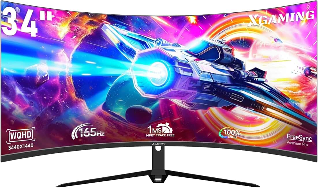 34 Inch Curved Monitor, Ultra Wide QHD 1440p Gaming Monitor 165Hz, 99% sRGB,1MS, FreeSync, HDMI DP Computer Monitor Built-in Speakers, 1500R WQHD 3440 x 1440 Gamer Monitor with RGB Strip Light