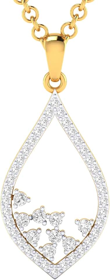 Certified 14K Gold Leaf Design Pendant in Round Natural Diamond (0.53 ct) with White/Yellow/Rose Gold Chain Natural Lover Necklace for Women
