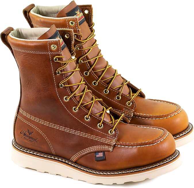American Heritage 8” Steel Toe Work Boots for Men - Full-Grain Leather with Moc Toe, Slip-Resistant Wedge Outsole, and Comfort Insole; EH Rated
