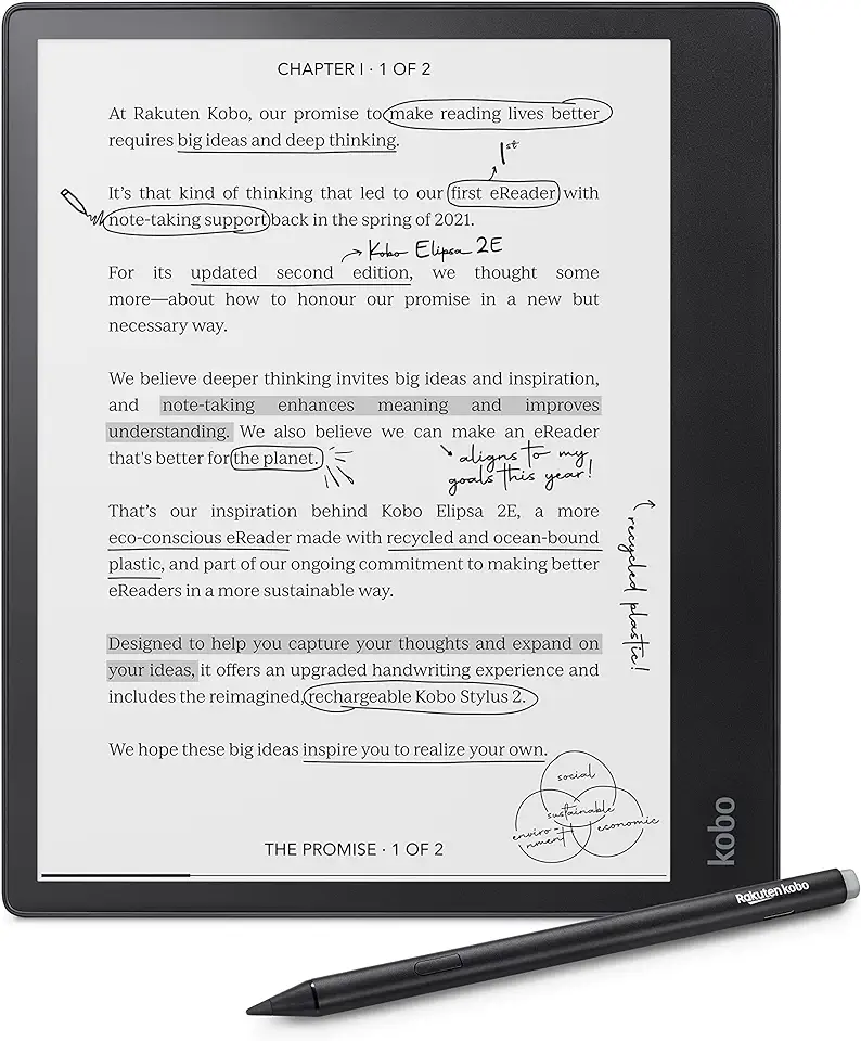 Kobo Elipsa 2E | eReader | 10.3” Glare-Free Touchscreen with ComfortLight PRO | Includes Kobo Stylus 2 | Adjustable Brightness | Wi-Fi | Carta E Ink Technology | 32GB of Storage