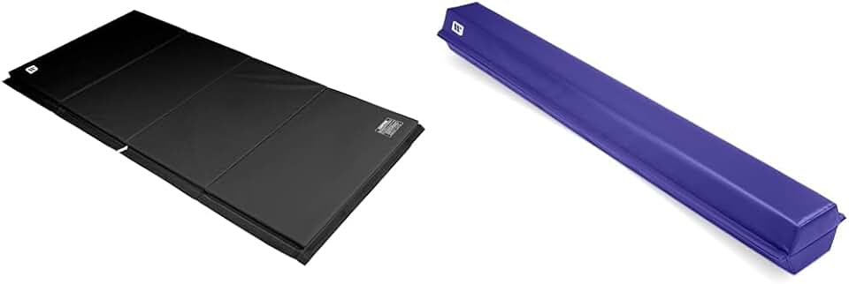 We Sell Mats 4 ft x 8 ft x 2 in Gymnastics Mat and 9 ft Folding Foam Balance Beam Bar Bundle