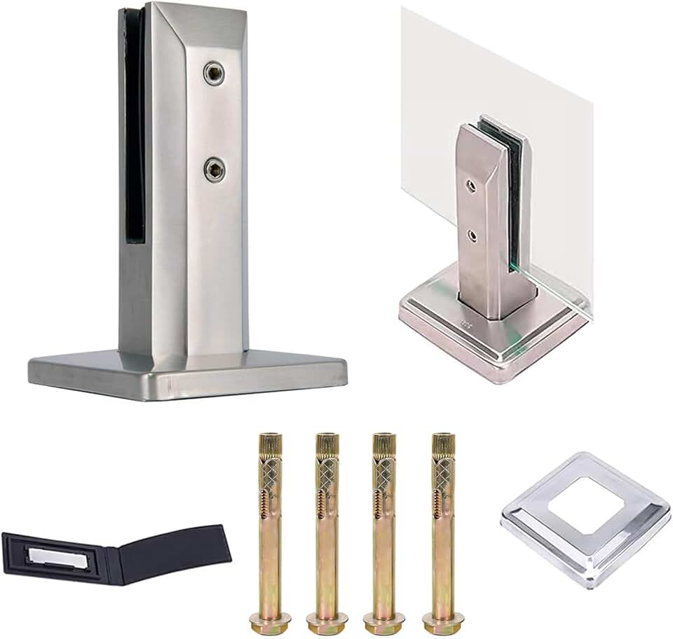 24 Pcs Square Glass Railing Bracket, for Glass Thickness 10mm-14mm (3/8''-9/16'') Pool Fence Staircase Railing Post Clamps,Silver,160mm
