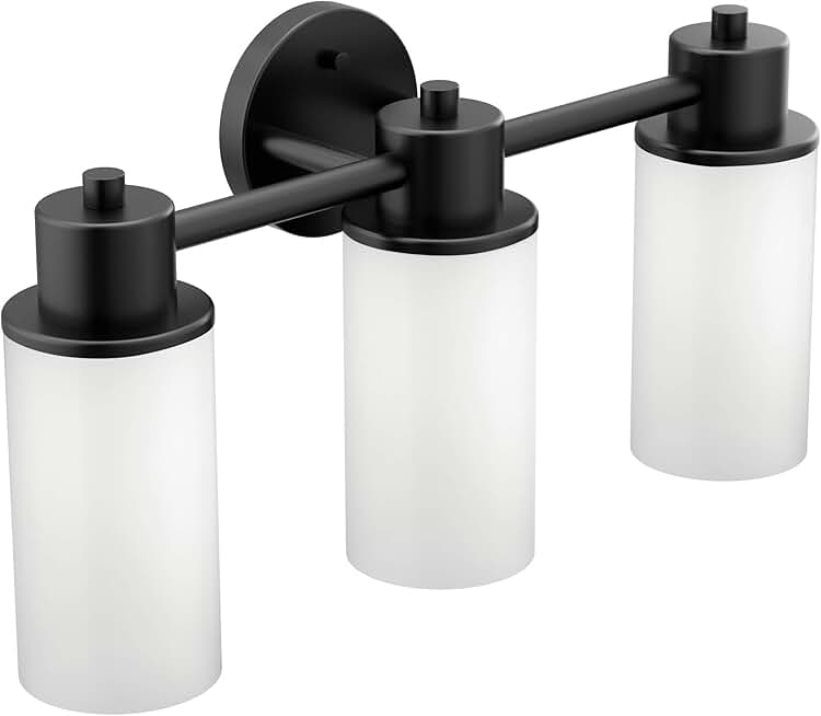 DN0763BL Iso 3-Light Dual-Mount Bath Bathroom Vanity Fixture with Frosted Glass, Matte Black