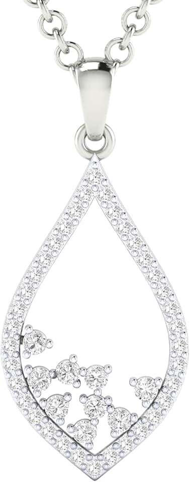 Certified 18K Gold Leaf Design Pendant in Round Natural Diamond (0.53 ct) with White/Yellow/Rose Gold Chain Natural Lover Necklace for Women