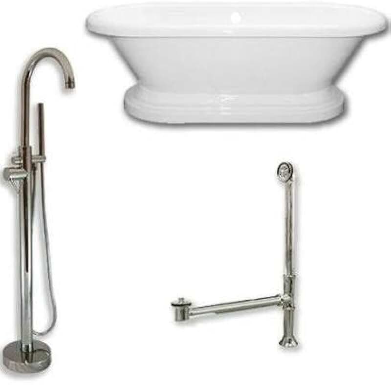 ADEP60-150-PKG-BN-NH 60 x 30 in. Acrylic Double Ended Pedestal Bathtub with No Faucet Drillings & Brushed Nickel Plumbing