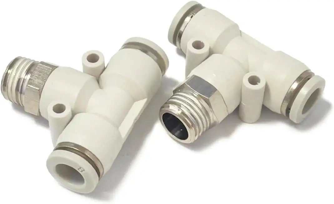 White Trachea Quick Connector PB14-02-03-04/16-02-03-04-06 T Type Three-way Thread Pneumatic Fittings 10Pcs(PB10-04(100PCS))