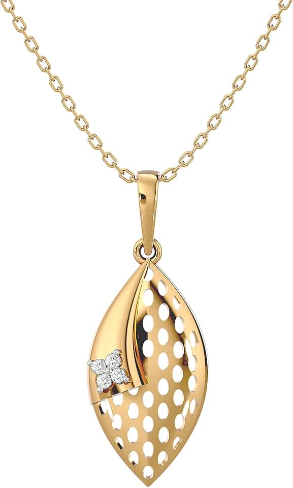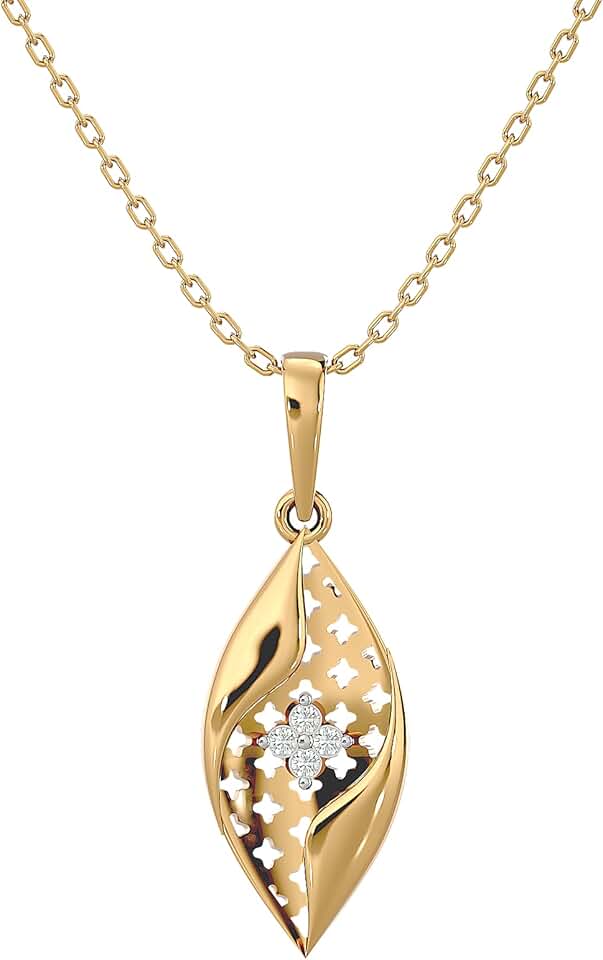 Certified 18K Gold Leaf Design Pendant in Round Natural Diamond (0.03 ct) with White/Yellow/Rose Gold Chain Engagement Necklace for Women