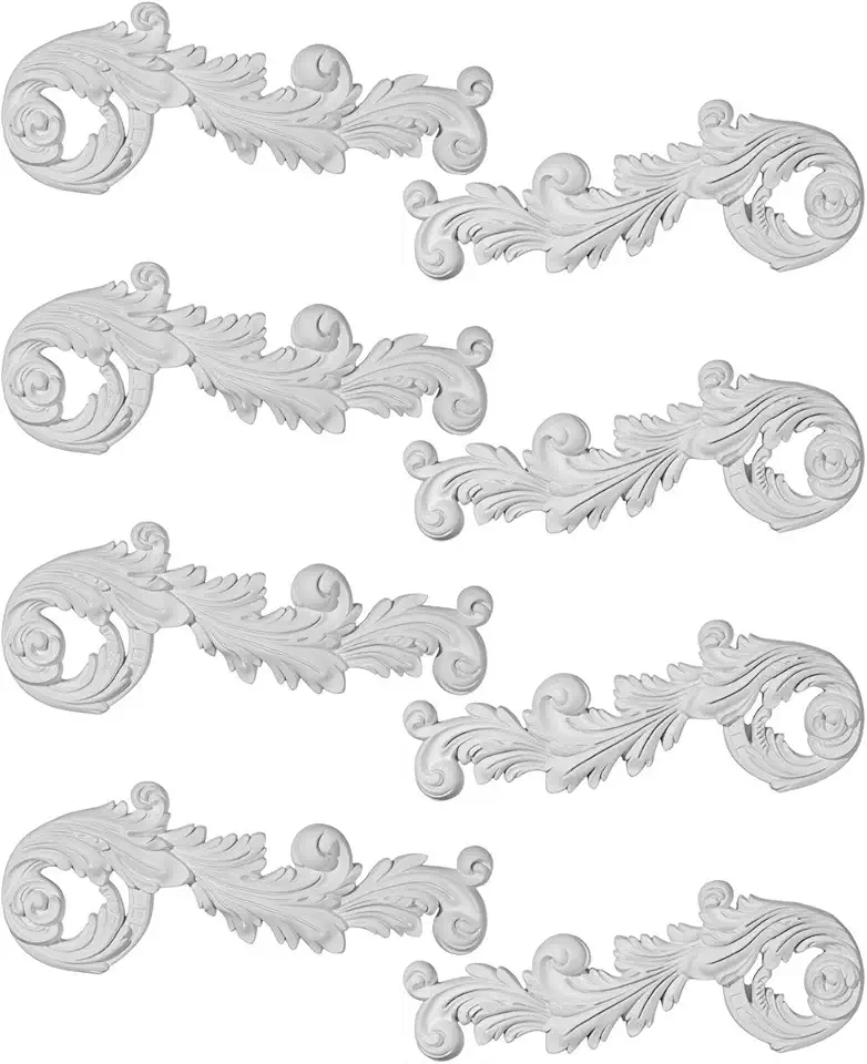 Ekena Millwork 17 3/4"W x 7 3/8"H x 1 1/8"P Paris Scroll Onlay, 4 Lefts & 4 Rights