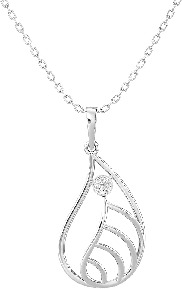 Certified 18K Gold Leaf Design Pendant in Round Natural Diamond (0.03 ct) with White/Yellow/Rose Gold Chain Anniversary Necklace for Women