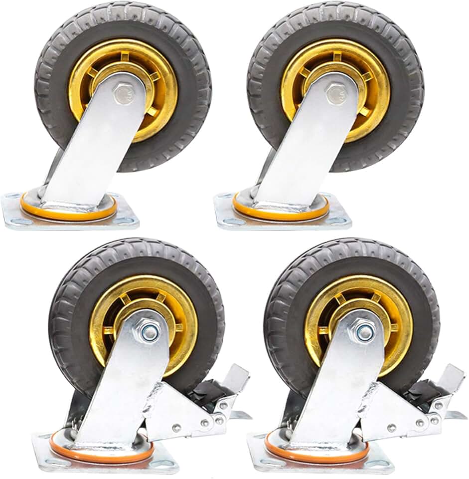 Universal Industrial Caster Wheels Heavy Duty 360° Swivel Transport Trolley Furniture Caster Swivel Plate Silent Replacement Rubber Wheel,Pack of 4(Brake+universal125mm)