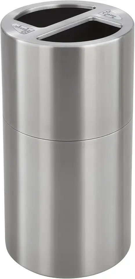 Safco Dual-Bin Indoor Contemporary-Style Recycling & Trash Can with Decals, Stainless Steel, 30 Gallon, Silver