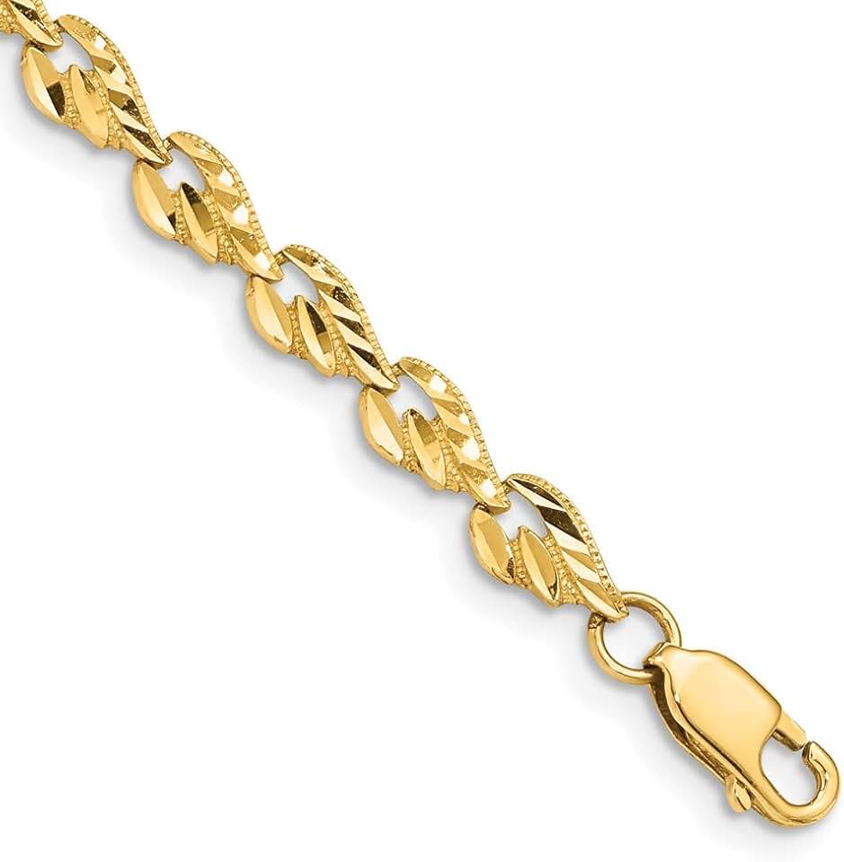 14K Yellow Gold Polished Diamond-Cut Leaf Chain Bracelet - 7"
