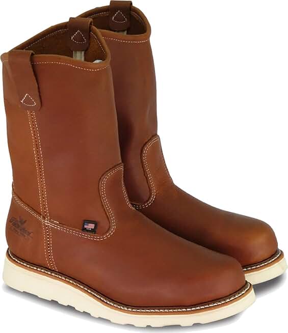 American Heritage 11” Steel Toe Wellington Boots for Men - Premium Full-Grain Leather with Slip-Resistant Wedge Outsole and Comfort Insole; EH Rated