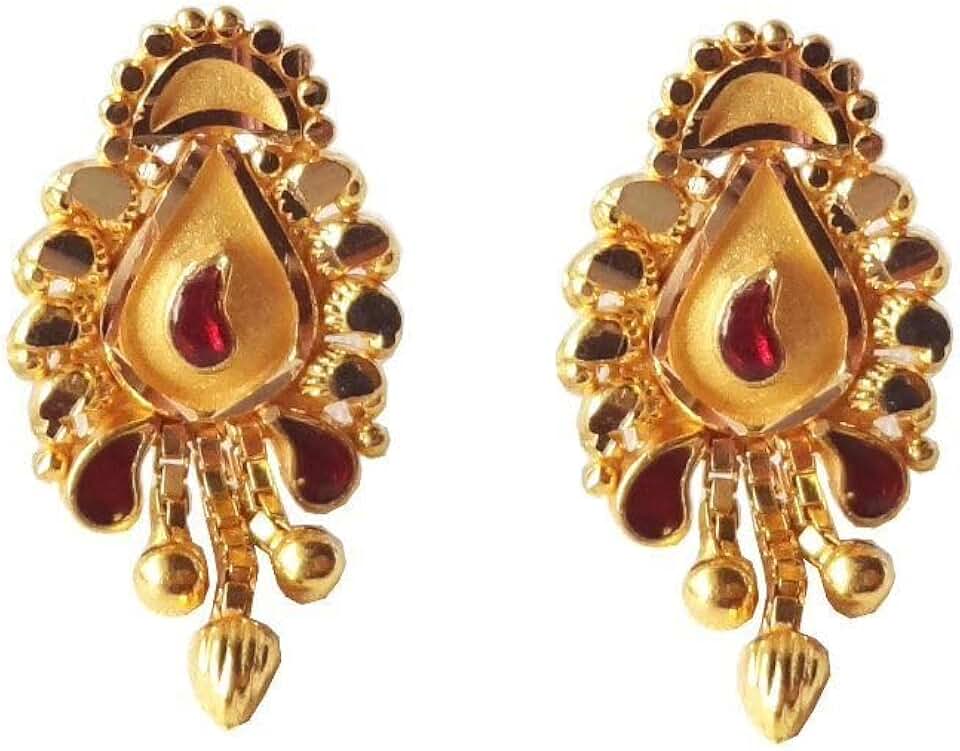 22K/18K Real Certified Fine Yellow Gold Chain Leaf Dangle Earrings