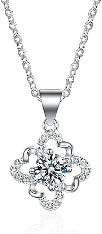 925 sterling silver four-leaf clover zircon pendant necklace, women's light luxury geometric type pendant clavicle chain
