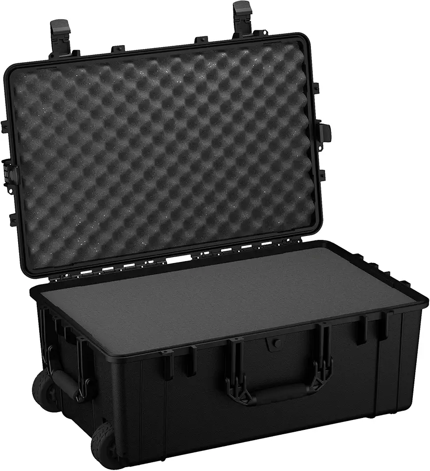 Condition 1 31" Large Waterproof Rolling Hard Travel Case with Wheels, Plastic Lockable Carry-On for Electronics, Tactical Gear, Made in USA, 1258, 31.6"x20.1"x12.66" Black