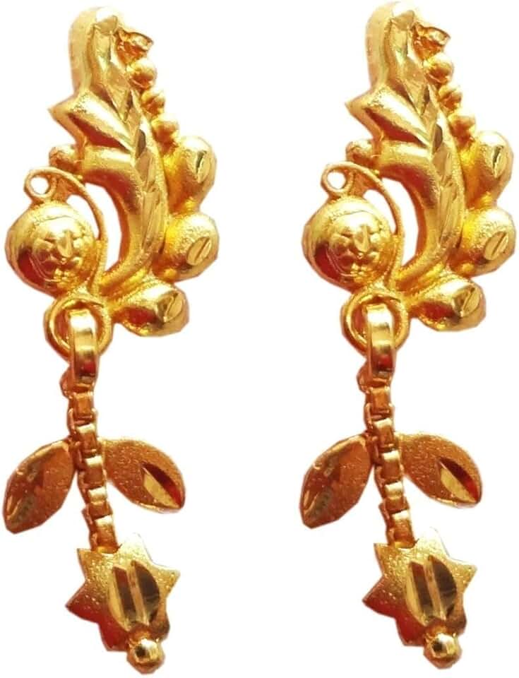 22K/18K Real Certified Fine Yellow Gold Adorable Chain Leaf Dangle Earrings