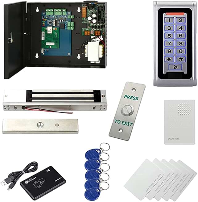 Indoor Outdoor Install Waterproof 1 Door Access Control Systems Metal Keypad Reader RFID PIN Code Open 600LBS Magnetic Lock 110V Power Supply Box with Management Software Phone APP Remotely Open Door