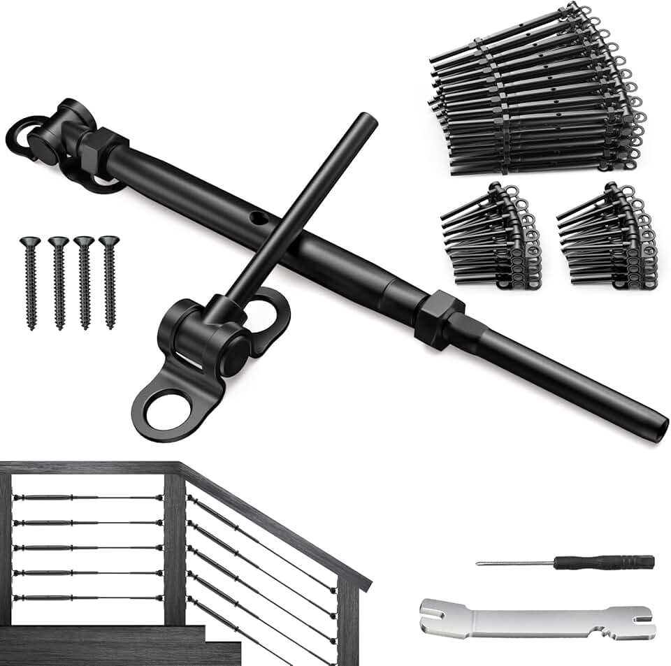 BLIKA 1/8" Black Cable Railing Hardware, 50 Pack T316 Stainless Steel Adjustable Angle 1/8" Black Cable Railing Kit for Wood Posts, Black Stair Cable Railing, Angle Cable Railing System