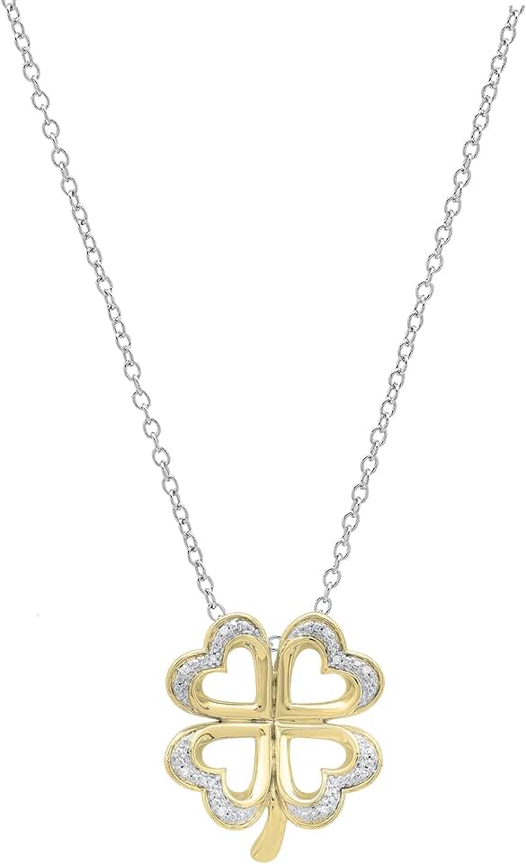 Dazzlingrock Collection 0.03 Carat (ctw) Round White Diamond Ladies Heart Shape Leaf Clover Pendant, Available in 10K/14K/18K Gold & 925 Sterling Silver