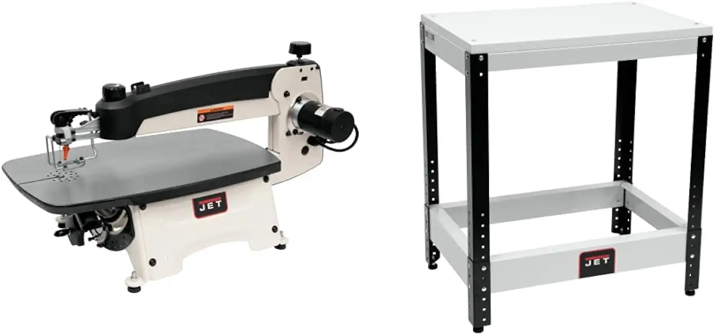 JET JWSS-22B, 22-Inch Scroll Saw with Foot Switch, 120V 1PH (727200B) and Universal Benchtop Machine Table (728100)