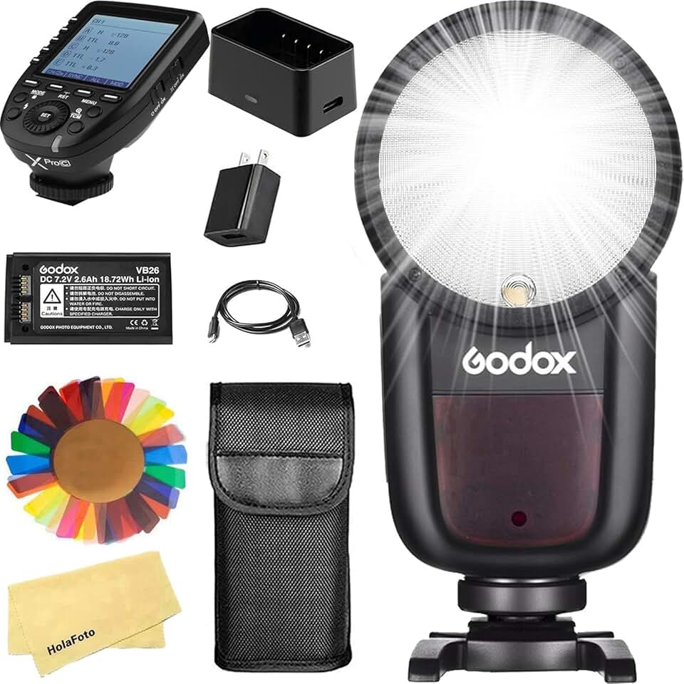 Godox V1-C Round Head Camera Flash with Godox XPro-C Flash Trigger for Canon Camera,76Ws 2.4G TTL1/8000 HSS,480 Full Power Shots,1.5s Recycle Time, 2600mAh Li-ion Battery,10 Levels LED Modeling Lamp
