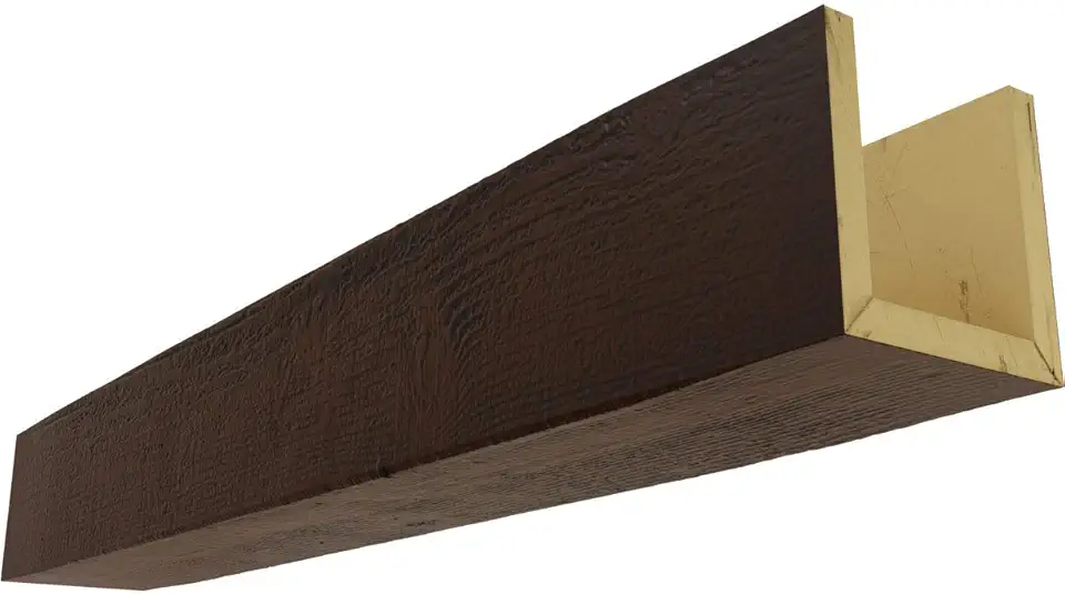 Ekena Millwork BMRS3C0080X040X144ZH 3-Sided (U Rough Sawn Endurathane Faux Wood Ceiling Beam, 8"W x 4"H x 12'L, Premium Hickory
