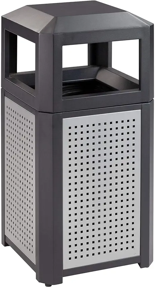 Safco Evos Steel Garbage Can for Indoor and Outdoor Use, Trash Receptacle with Plastic Liner, 15 Gallons