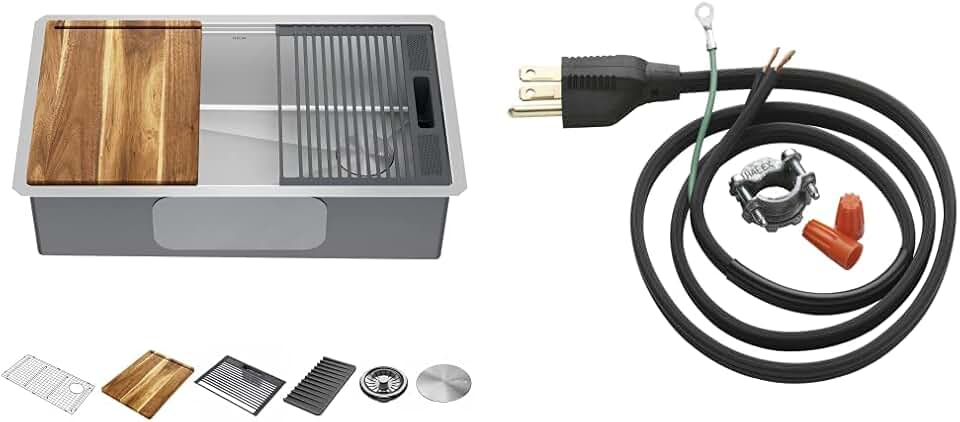 DELTA FAUCET 95B932-32S-SS Lorelai Workstation Kitchen Sink Undermount Stainless Steel Single Bowl with InSinkErator Garbage Disposal Power Cord Kit