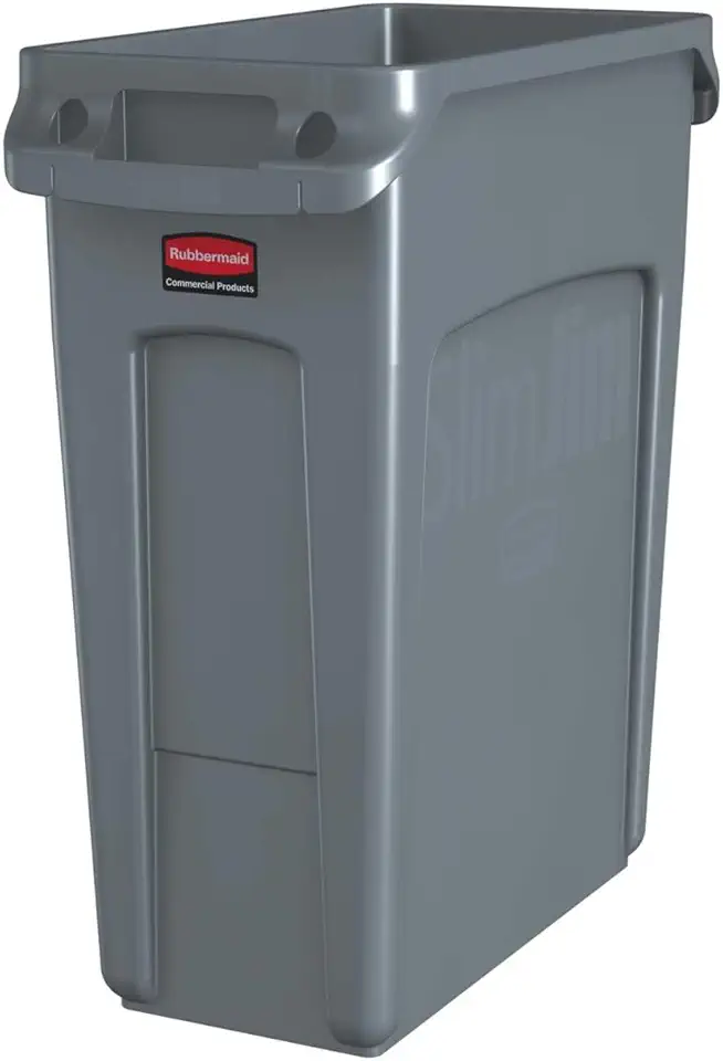 Rubbermaid Commercial Products Slim Jim Trash/Garbage Can with Venting Channels, 16-Gallon, Gray, for Kitchen/Office/Workspace, Pack of 4
