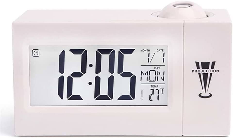 LELED Digital Projection Alarm Clock Temperature Thermometer Desktop Time Date Display Projector Calendar (Color : OneColor, Size : 147x55x89mm)