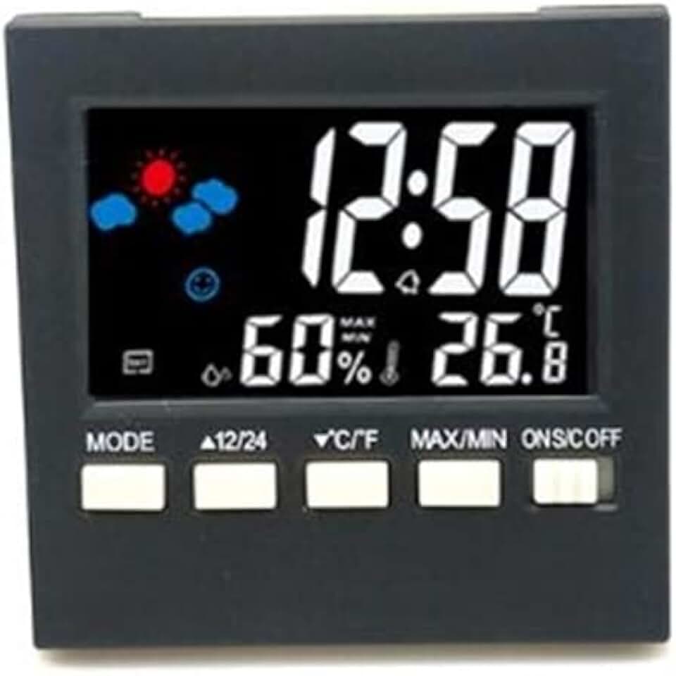 Color LCD Digital Alarm Clock Temperature Humidity Voice Control Snooze Time Night Light Weather Forecast Display LED Clock