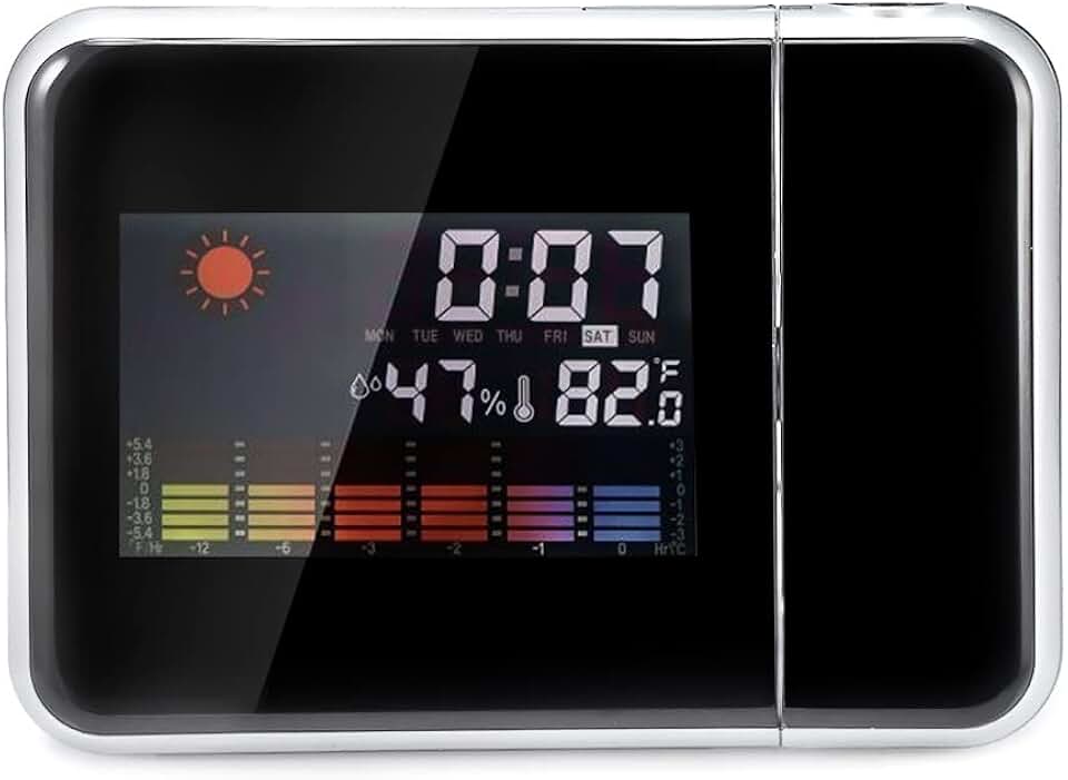 LED Electronic Weather Forecast Projection Alarm Clock USB Clock with Time Temperature Humidity Weather (Color : E)
