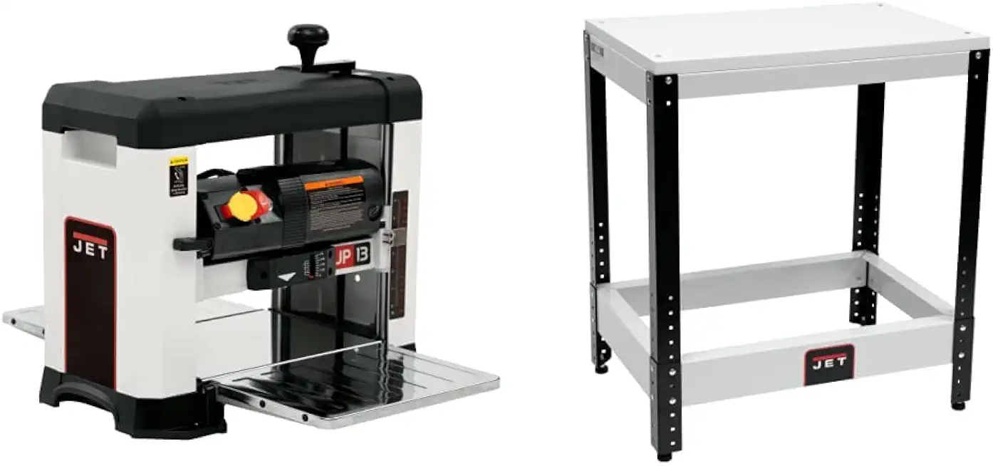 JET JWP-13BT, 13-Inch Helical-Style Benchtop Planer, 120V 1PH (722130) and Universal Benchtop Machine Table (728100)
