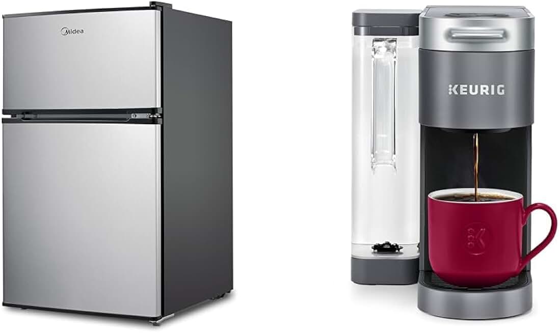 Midea WHD-113FSS1 Compact Refrigerator, 3.1 cu ft, Stainless Steel & Keurig® K-Supreme Single Serve K-Cup Pod Coffee Maker, MultiStream Technology, Gray