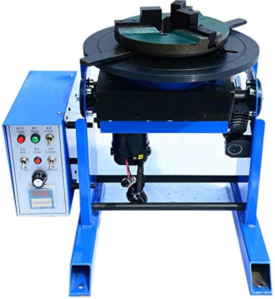 Hanchen 30KG Heavy Duty Welding Positioner 0-100º Turntable Time Control Positioning Machine for Welding Pipe Workpiece Rotary Welding Equipment with 200mm Chuck